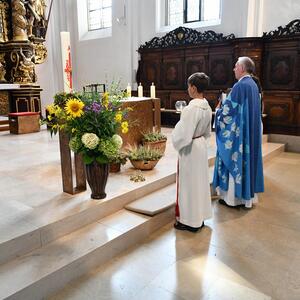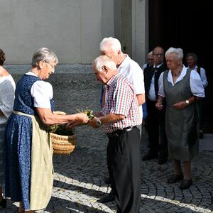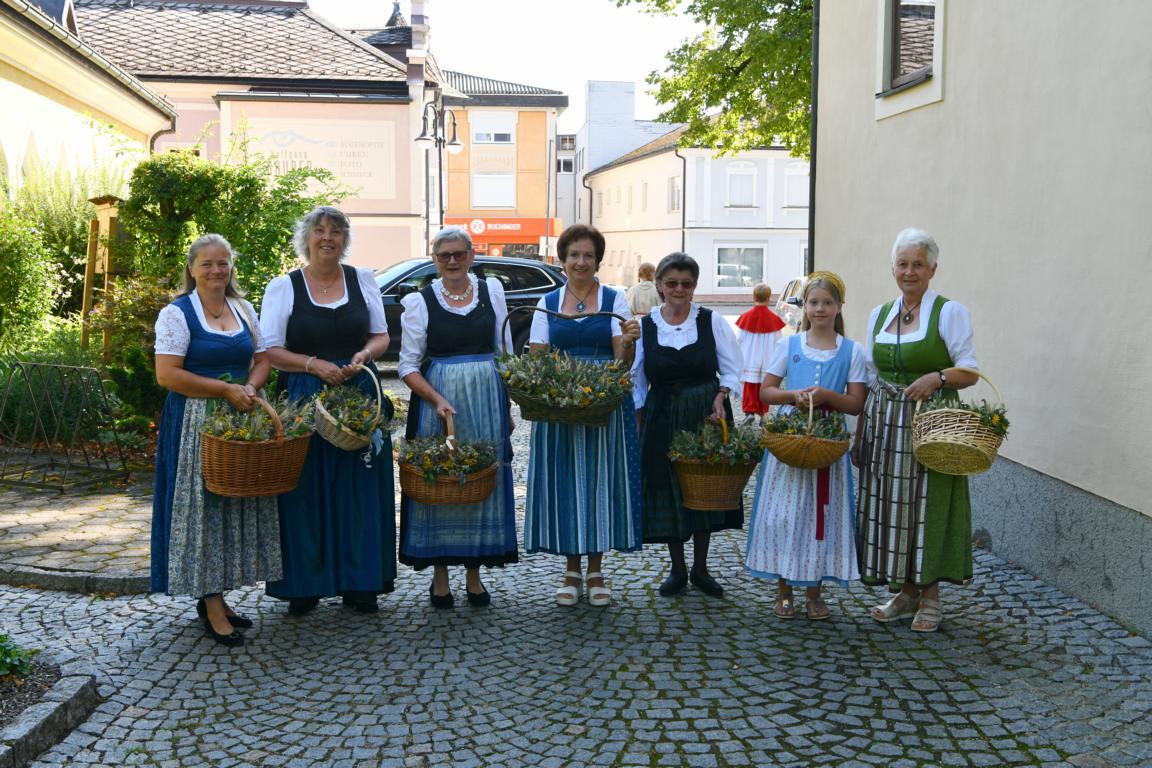 Mit dem sommerlichen Marienfest ist auch das Brauchtum der Kräuterbüscherl verbunden, das in Vöcklamarkt von den Goldhaubenfrauen gepflegt wird. Gezählte 450 Stück haben sie heuer gebunden und bei den beiden Gottesdiensten durch Pfarrer Johann Greinegger segnen lassen. Anschließend wurden die wohlriechenden Büscherl an die Mitfeiernden verteilt, damit sich diese den "Geruch des Festes" mit nachhause nehmen konnten.