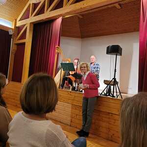 Am Dienstag, 12. November lud die kath. Frauenbewegung zur Geschichte für Erwachsene in den Pfarrsaal ein. Etwa 80 Personen waren dieser Einladung gefolgt, um sich in Cornelia Kirsch und Gerhard Schilchers Geschichte nach Schweden entführen zu lassen. Sie erzählten – begleitet von Gesang, Harfe und Gitarre – in berührender Weise die Geschichte des Ehepaares Lucia und Sven. Ein Genuss für die Ohren und eine Wohltat für die Seele.