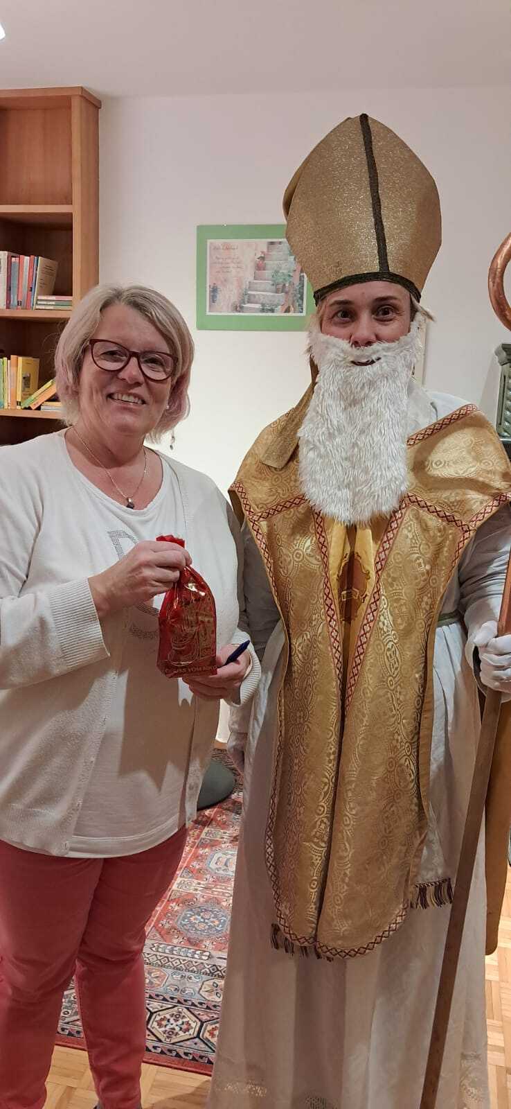 Selbst Pfarrleiterin Irmgard Raffetzeder wurde vom Nikolaus ein kurzer Besuch abgestattet. Was man so hört, hatte er aber nur Lob und ein paar Süßigkeiten im Gepäck;-)