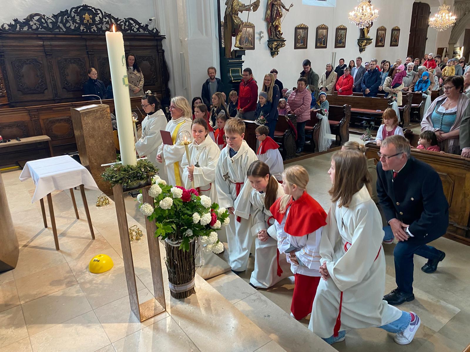 Am 25. Mai feierte die Pfarre einen Familienwortgottesdienst mit Kinderfahrzeugsegnung. Viele Kinder kamen mit ihren Fahrzeugen zur Feier unter dem Titel "Gott ist mit uns unterwegs", die vom Fachteam "Junge Kirche" und dem Kinderwortgottesfeier Team gestaltet wurde. Erzählt wurde den Kindern auch die Geschichte vom jungen Tobias, der auf einer Reise vom Erzengel Raphael begleitet und beschützt wurde. Nach dem Gottesdienst wurden von Seelsorgeverantwortlicher Irmgard Raffetzeder die Kinder und ihre Fahrzeuge gesegnet. Aufgrund des Wetters musste das anschließende Picknick leider in den Pfarrsaal verlegt werden, wo das Fachteam "Feste und Feiern" wieder alles so perfekt vorbereitet hat.