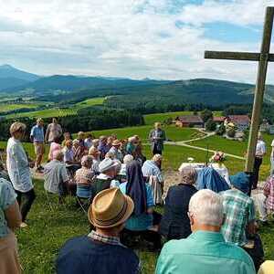 Am 13. Juli feierte die Pfarrgemeinde am Lichtenberg einen Gottesdienst in freier Natur. Viele kamen zur Mitfeier auf den beliebten Ausflugsberg in unserer Nähe, einige auch zu Fuß, per Fahrrad oder E-Bike. Das Wetter war herrlich, heiterer Himmel, ein leichtes Lüftchen und es gab wunderbare Fernsicht. In der Predigt sprach Pfarrer Johann Greinegger über die Entfremdung der Menschen von der Natur, von den Mitmenschen und von Gott und gab dabei der Feiergemeinde anregende Gedanken und Fragen zum nachsinnen und bedenken mit. Die musikalische Gestaltung übernahm ein Bläserquartett unter der Leitung von Ernst Ebetsberger. Vielen Dank dem Organisationsteam Anton und Rosa Astegger und allen für's Kommen und Mitfeiern.