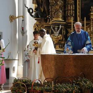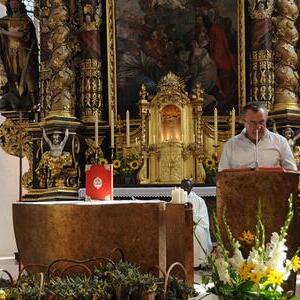 Zum Hochamt um 10:00 Uhr mit Pfarrer Johann Greinegger und Ferdinand Baraguize sang der Kirchenchor unter Begleitung eines kleinen Orchesters. Ein ganz besonderes Gastspiel gab die Mezzospranistin Elisabeth Starzinger, die die Kirchenbesucher mit zwei wunderbaren Gesangsstücken erfreute.