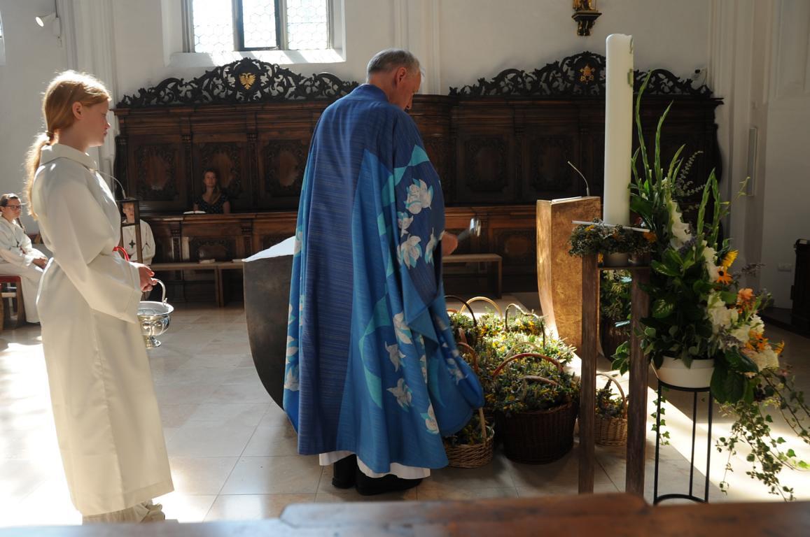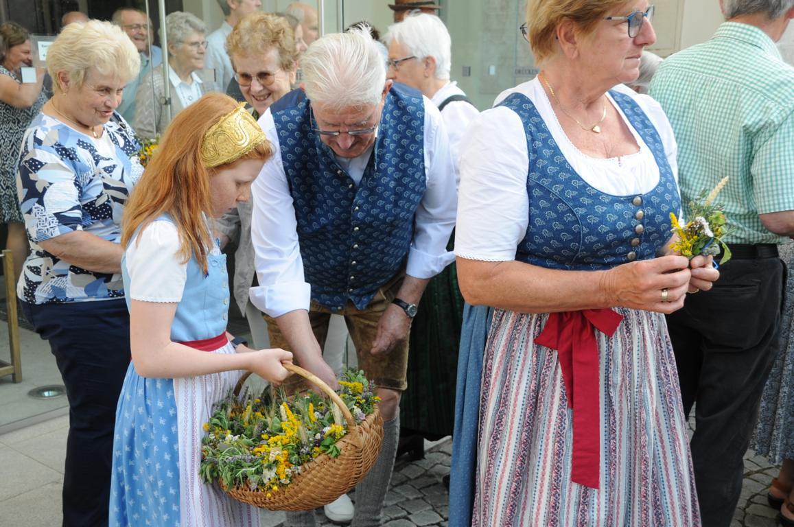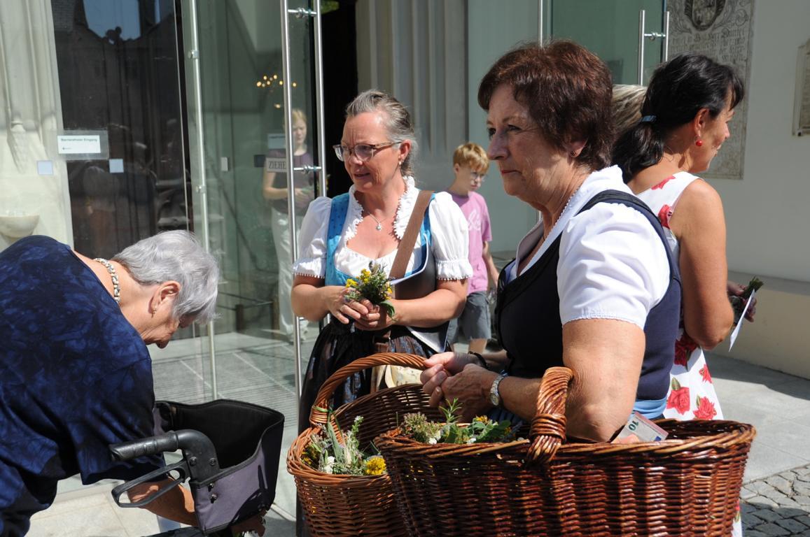 Im Anschluss verteilten die Goldhaubenfrauen wohlriechende und gesegnete Kräuterbüscherl an die Mitfeiernden. Über 400 an der Zahl haben sie auch heuer wieder gebunden, vielen Dank dafür!