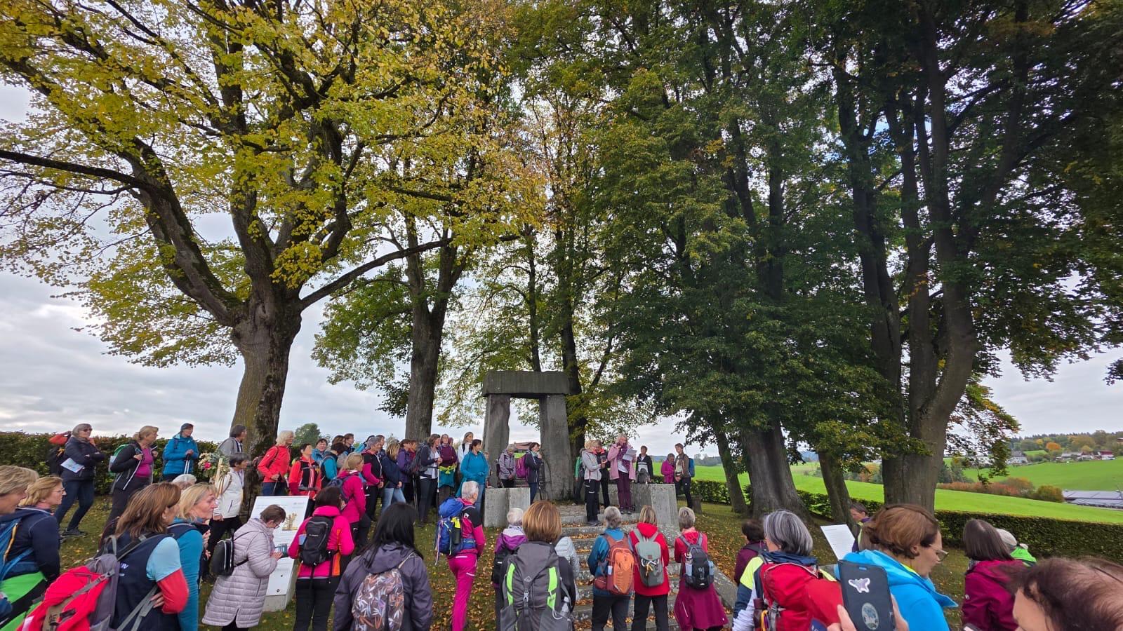 Auch die kfb Vöcklamarkt beteiligte sich heuer an der Aktion, und so wanderten 107 Frauen von der Pfarrkirche Vöcklamarkt durch das Kreuzerbauernmoos nach Fornach, von wo der Weg über Außerreith und Hausham zurückführte. Bei der Pfarrkirche, dem Marterl in Kriechpoint sowie bei der Scheibl-Kappelle und beim Haushamer-Denkmal luden unsere geistlichen Pilgerbegleiterinnen Irmgard Raffetzeder und Rosa Astegger zu kurzen Impulsen und Andachten ein. Eine ganz besondere Atmosphäre herrschte, als die große Gruppe in Stille durch das Kreuzerbauernmoos wanderte.