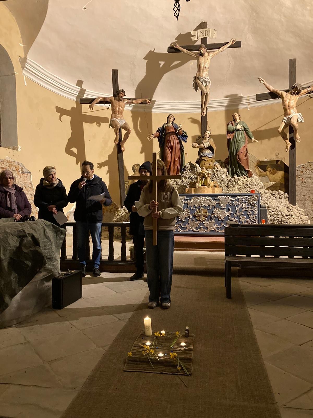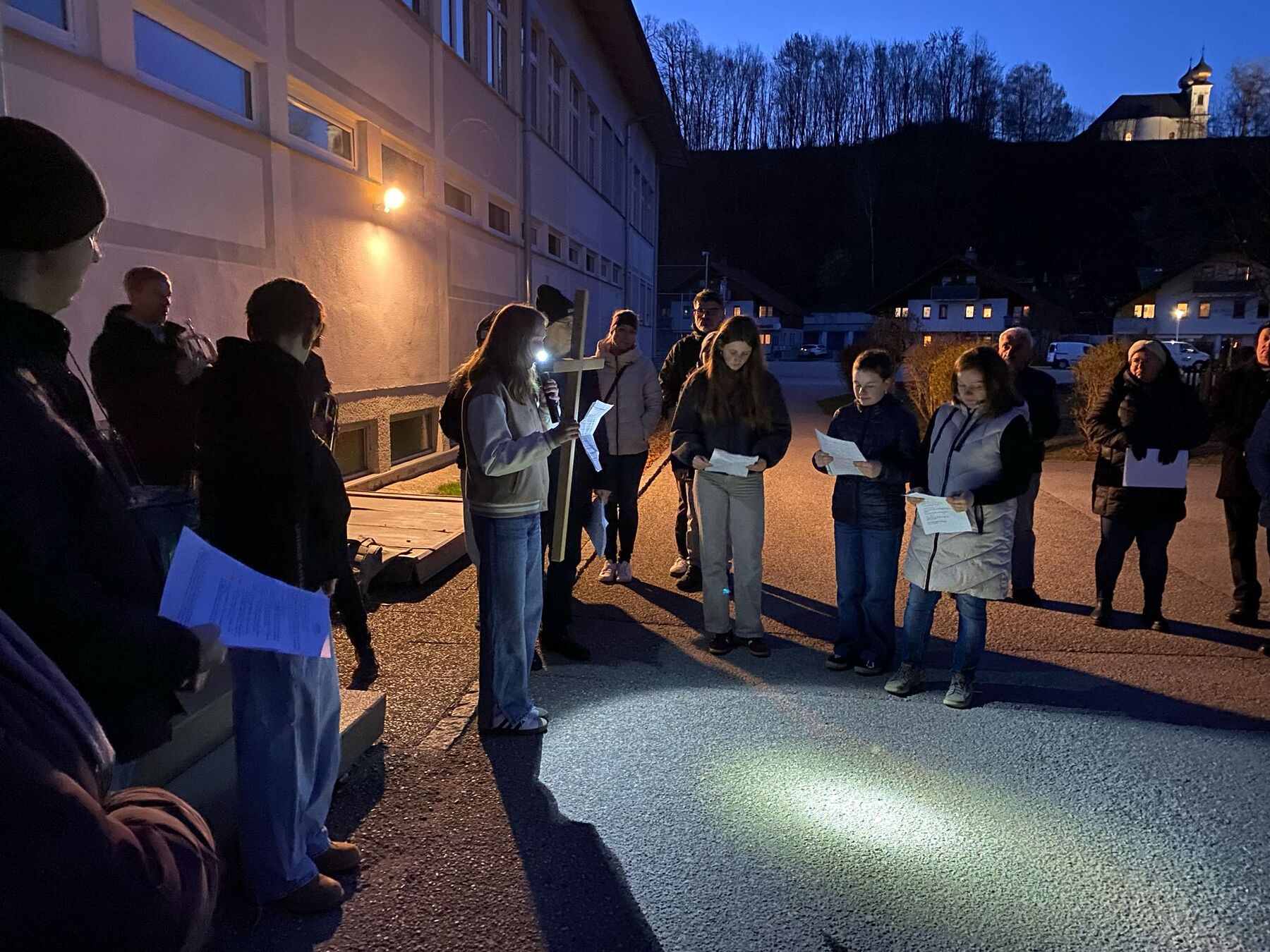 Am Abend des 5. Fastensonntags wurde der heurige Vöcklamarkter Pfarrkreuzweg gegangen und gebetet. Der Weg führte von der Pfarrkirche hinauf auf den Kalvarienberg zur dortigen Kirche mit der eindrucksvollen Kreuzigungsgruppe und dem Heiligen Grab. Das gesamte Ensemble des Vöcklamarkter Kalvarienbergs mit den Kapellen ist ein herausragendes Glaubens- und Kulturdenkmal unserer Gemeinde. Viele pfarrliche Gruppierungen, darunter eine Firmgruppe, bereiteten Station vor, mit tiefen Gedanken, Musik und Gebet. Herzlichen Dank allen, die mitgegangen sind.