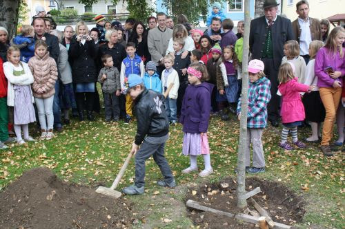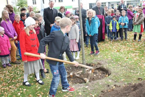 Zur Erinnerung an dieses Fest und an das Jubiläum unseres „Domes“, pflanzte Bischof Maximilian nach dem zweiten Gottesdienst mit den Kindern einen Baum im Kirchenpark.