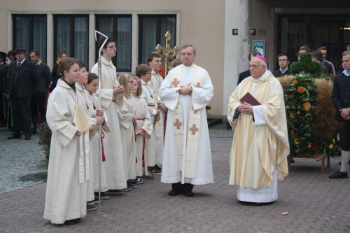 Besonders danken wir bei diesem Erntedankfest für unsere Pfarrkirche, der ein „Thronsaal Gottes ist, den man nicht so leicht vergisst, eine Tür zum Himmel. Und doch besteht dieses Gotteshaus aus toten Steinen – Ihr aber seid die lebendigen Steine, die zusammenstehen und füreinander sorgen.“