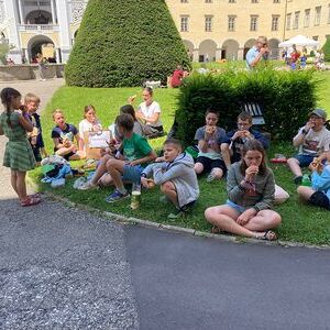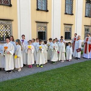 Mit den Minis aus dem Seelsorgeraum durften wir sogar ganz vorne mit dem Bischof in die Stiftsbasilika einziehen! Für die Minis war dieser feierliche Gottesdienst ein ganz besonderes Erlebnis. Danach gab es bei wunderschönem Wetter Spiele – und Bastelstationen, eine Hüpfburg, die Möglichkeit, einfach im schönen Stiftsgarten in der Sonne zu sitzen und den Tag zu genießen. Mit einem bischöflichen Segen endete der Tag. Schön, dass auch aus Waldburg Minis dabei waren!