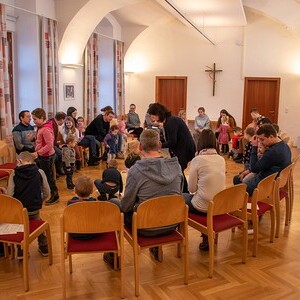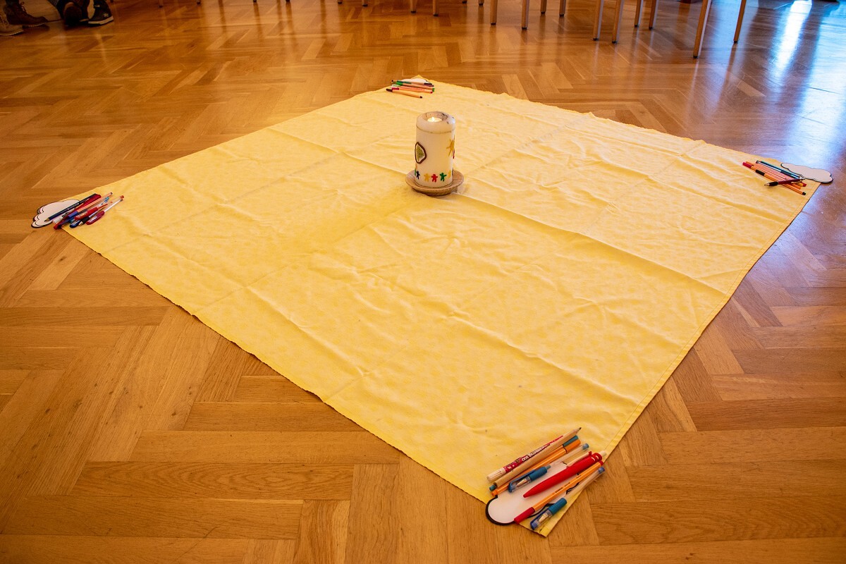 Unser Thema war Feste feiern. Gemeinsam haben wir überlegt, welche Feste wir in der Kirche und in unseren Familien feiern. Wir haben die Geschichte von Jesus bei der Hochzeit in Kana gehört und erfahren welches Wunder er dort vollbracht hat.