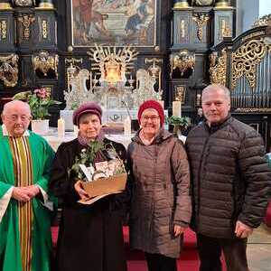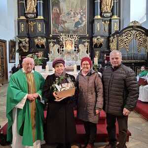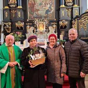Zu diesem Anlass wurde ihr für ihre langjährige Tätigkeit in der Pfarre und besonders im Bereich Caritas ein Diplom und ein kleiner Geschenkskorb überreicht. Wir danken ihr für die vielen Stunden, die sie für Kranke, Bettlägerige und Hilfsbedürftige aufgebracht hat und immer noch aufbringt.