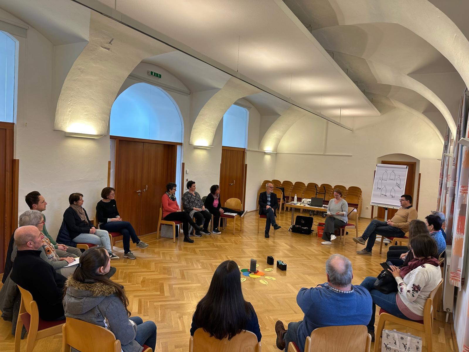 Am 15.02.2025 fand von 09:00 bis 16:00 Uhr im Stift Waldhausen mit 18 Personen des aktiven Pfarrgemeinderates die PGR-Klausur zum Thema „WEGE IN DIE ZUKUNFT - KIRCHE WEIT DENKEN“ statt.