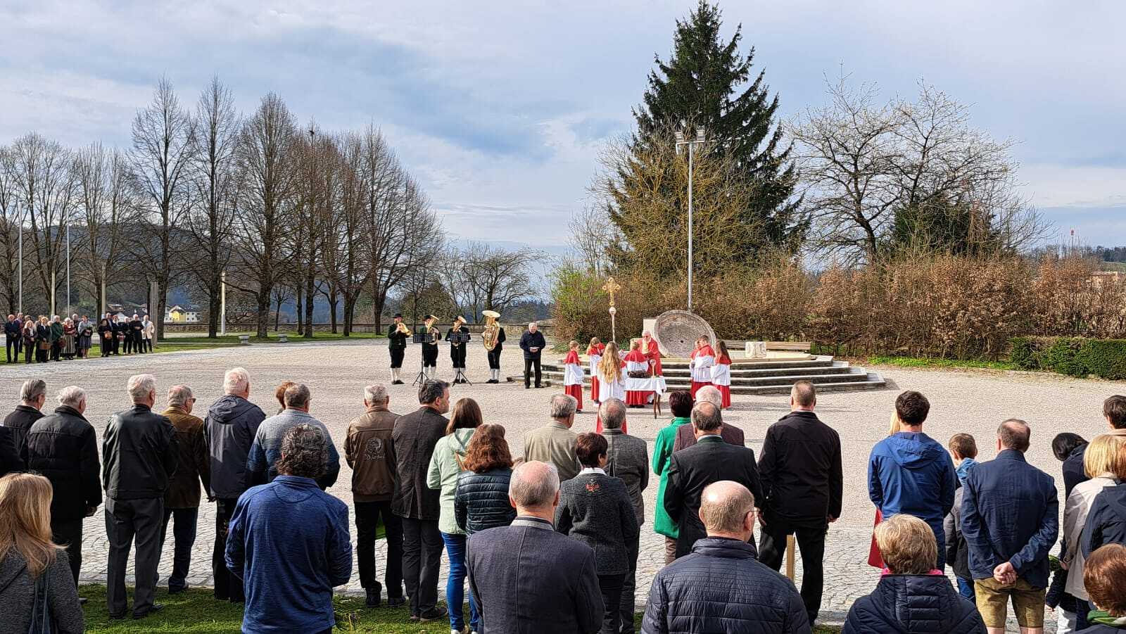 Palmweihe im Stiftshof mit musikalischer Umrahmung durch ein Bläserensemble, im Anschluss Leidensmesse in der Stiftskirche
