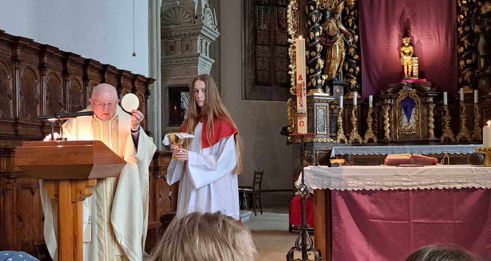 Die Abendmahlmesse um 16 Uhr wurde von den Erstkommunionkindern gestaltet. Pfarrprovisor Karl Michael Wögerer erklärte den Kindern ausführlich wie wir an das letzte Abendmahl bei der Feier jeder Hl. Messe gedenken.