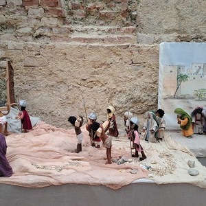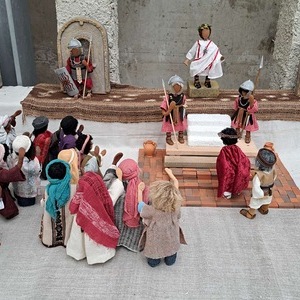 Bildeindruck aus der Passions- und Osterausstellung mit biblischen Erzählfiguren: 'Pilatus spricht über Jesus das Todesurteil' und 'Jesus wird zur Kreuzigung g'führt'