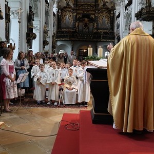 28 Kinder feierten feierlich das Fest ihrer Erstkommunion in der Stiftskirche. Die Kinder nahmen mit Freude bei der Messgestaltung mit Liedern und gelesenen Texten teil. Ein herzliches Dankeschön gilt allen, die zum Gelingen der Vorbereitungsstunden und der Feier beigetragen haben.