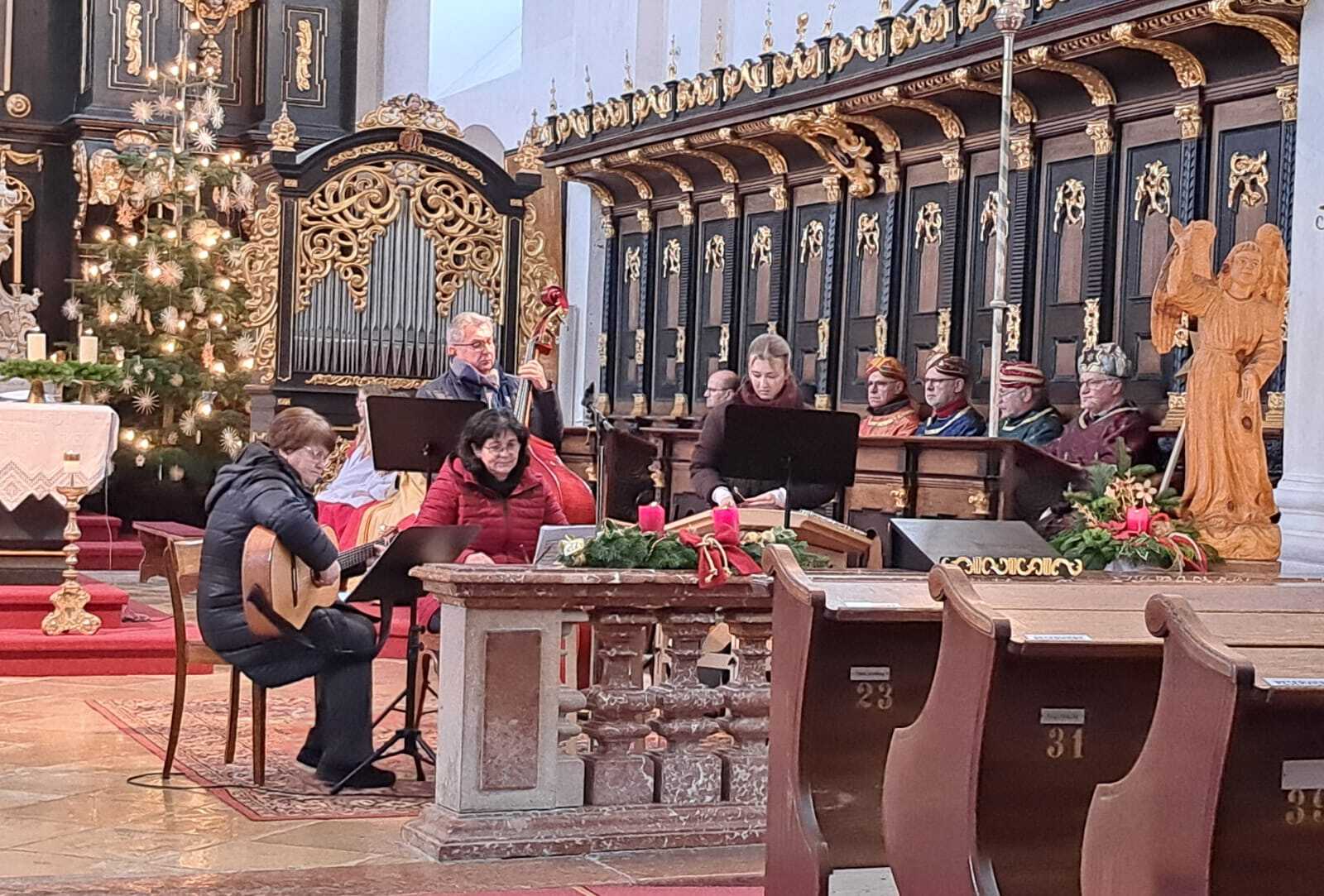 Die sehr stimmige musikalische Umrahmung des Gottesdienstes erfolgte durch das Ensemble 'Saitenklinger' unter der Leitung von Erna Jaidhauser und durch Volksgesang begleitet von der Orgel.