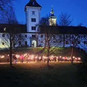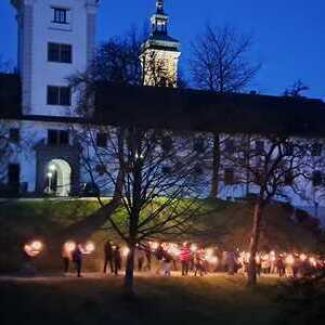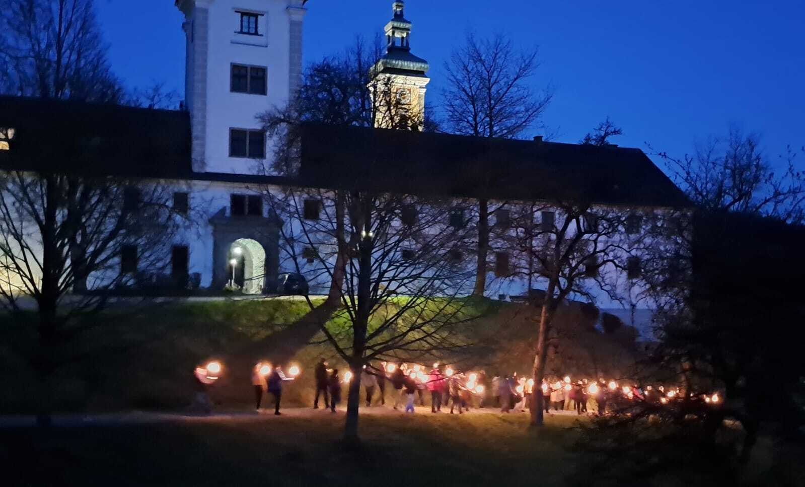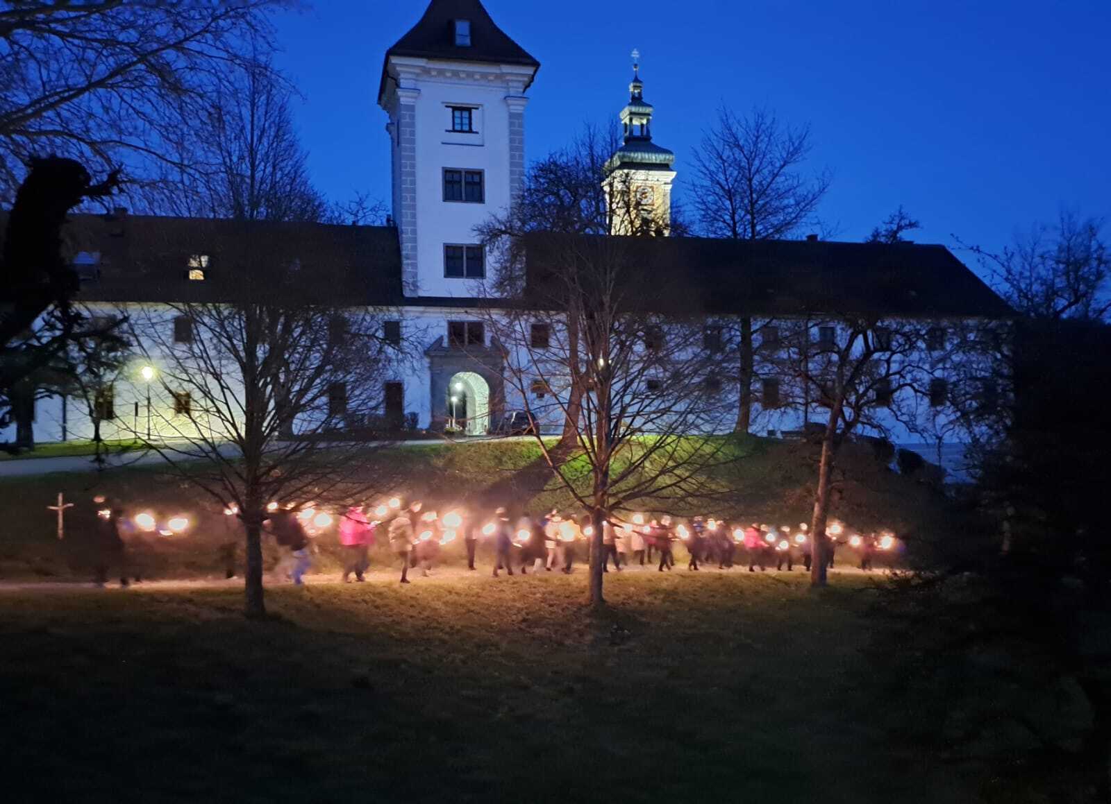 Fotos von der Karfreitagsliturgieren und der Fackelkreuzweg von der Stiftskirche zum Friedhof.