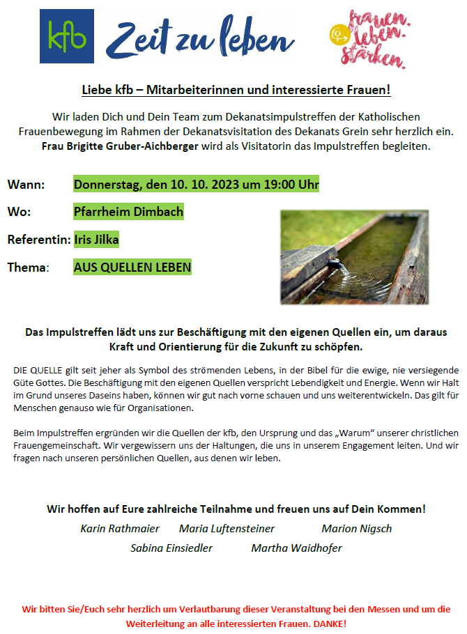 kfb Dekanatsimpulstreffen - AUS QUELLEN LEBEN