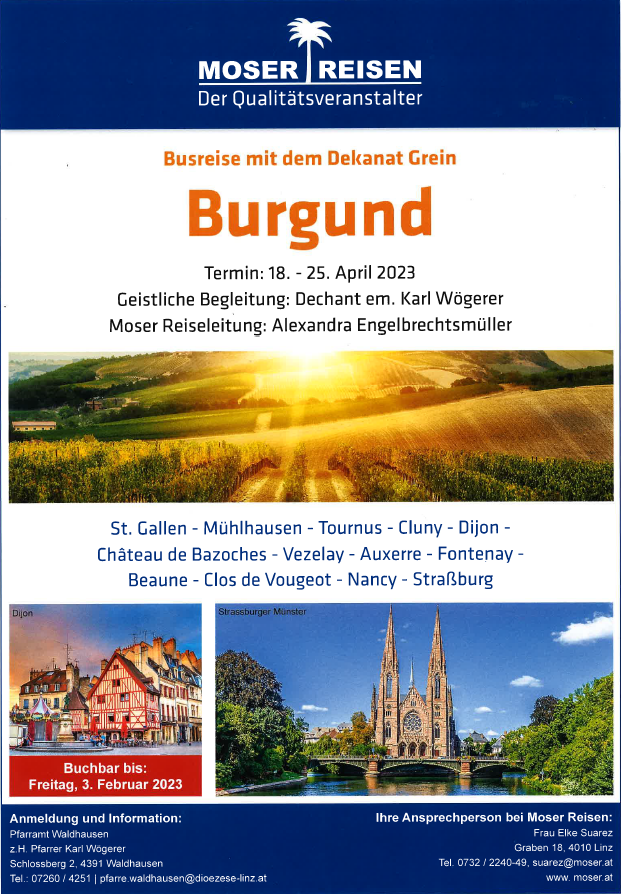 Pfarrreise Burgund von 18. - 25. April 2023
