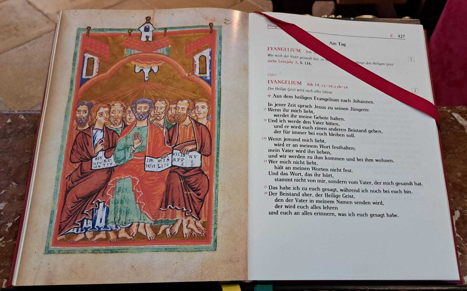 Liedauswahl waren diverse Pfingst-Lieder aus dem Gotteslob, Teile aus der Messe “Frischer Wind” von Stefanie Poxrucker und eine Interpretation des Liedes “Ich glaube” von Udo Jürgens.