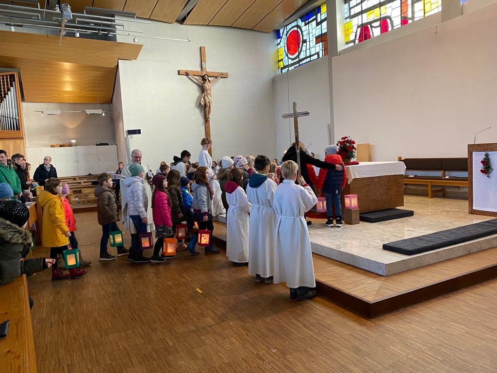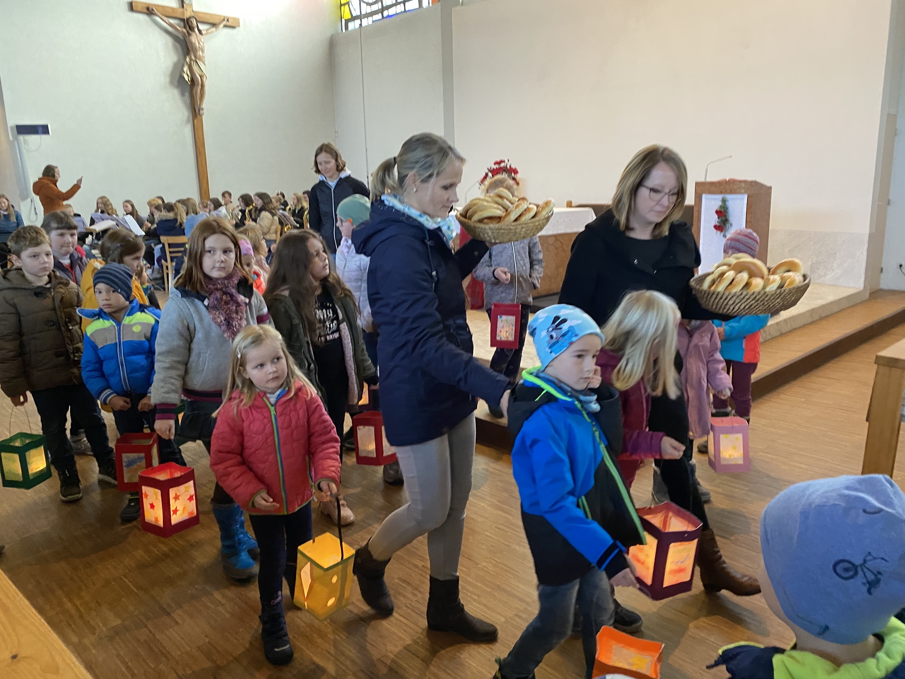 Vergangenen Sonntag feierten wir Familiengottesdienst zum Fest des Hl. Martin. Viele Kinder kamen zur gemeinsamen Feier und zogen mit ihren Laternen zum Altar. Unser KiLi-Chor und die JukaWa umrahmten den Gottesdienst musikalisch und das Team der Kinderliturgie hatte passende Texte, Bilder und Symbole vorbereitet.