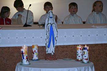 Was und wo sind die Knoten in unserem eigenen Leben? Wo brauche ich die Hilfe Marias um die Knoten zu lösen? Wir brachten unsere Sorgen, Anliegen, Nöte und Bitten zu Maria - symbolisch mit einem kleinen, verknoteten Band.