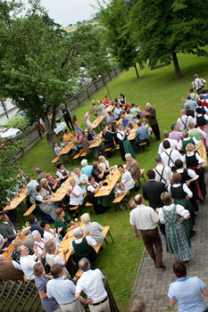 Die Goldhaubenfrauen sorgten für das leibliche Wohl der Väter und aller Kirchenbesucher. Die "etwas ältere Volkstanzgruppe" umrahmte die Agape mit ein paar Tänzen.