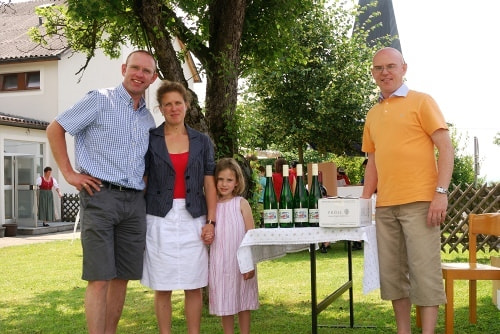 Und diese 4 Säulen tragen das zufriedene Puplikum. In diesem Publikum heuer auch die Winzerfamilie Pröll, die unseren Pfarrwein produzierten. Im Rahmen des Pfarrfestes gab es dann noch einen 2. Beitrag der Feuerwehr : Eine Spendenübergabe für die Pfarrhofrenovierung an die Pfarre aus dem Erlös vom Florianikaffee durch Kommandant Rudi Reiter. Ein recht herzliches Vergeltsgott.