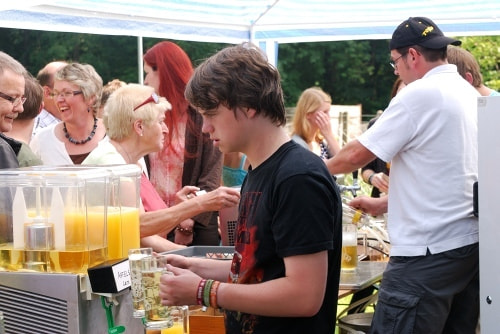 Anschließend fand im Pfarrgarten bei herrlichen Wetter das traditionelle Pfarrfest statt. Was jetzt überall so modern ist, das gibts bei uns schon lange : das Säulenmodell. Rein wissenschaftlich schaut das für das Pfarrfest so aus :