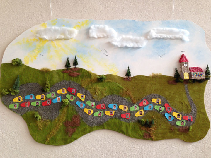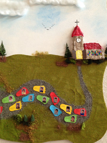 Und die Kinder haben bereits den Großteil ihres Weges der Vorbereitung hinter sich, ein kleines Stück liegt noch vor ihnen und sie dürfen am 29. Mai in das Haus des Herrn einziehen. Jedes Kind hinterlässt seinen Fußabdruck auf diesem Weg.