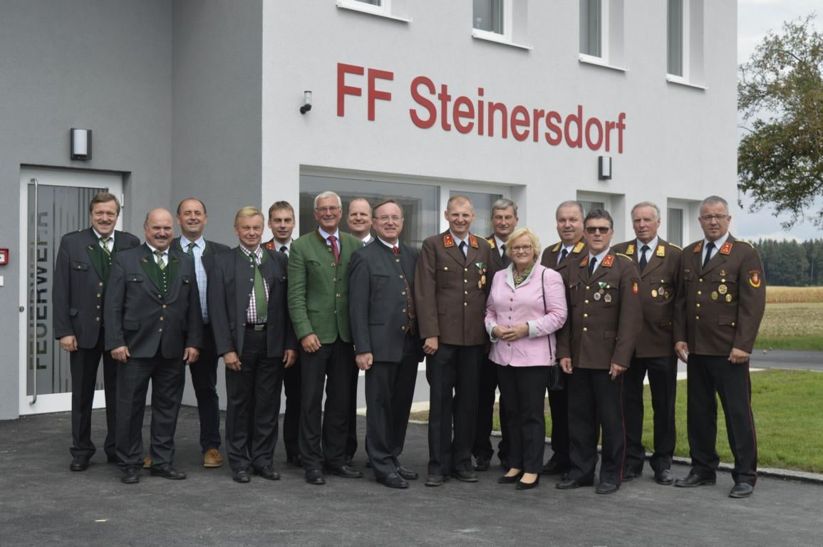 Ehrengäste bei der Segnung und Einweihung des FF-Hauses Steinersdorf