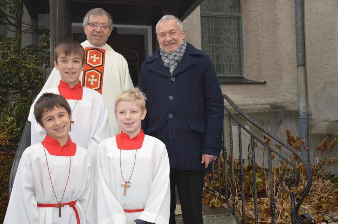Als Zeichen für den Dienst bekamen sie ein kleines Holzkreuz, das nun bei den Gottesdiensten getragen wird. Pfarrer Hofmann bedankte sich auch beim Ministrantenbetreuer Ernest Ulbrich für seinen Einsatz.