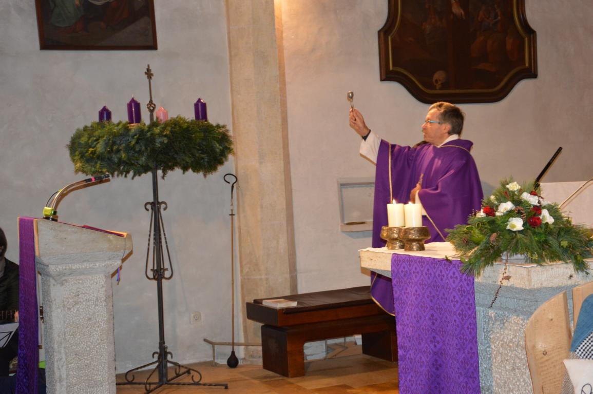 Pfarrer Hofmann segnete die vielen Adventkränze am Schluss des Gottesdienstes.