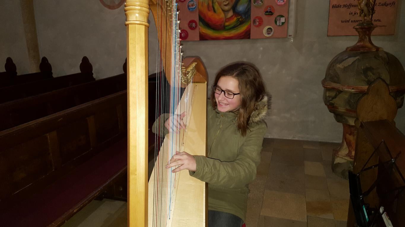 Besonders schön war in der Silvesterandacht das Harfenspiel von Charlotte Gruber aus Molln, das Patenkind von Irene Gasplmayr.