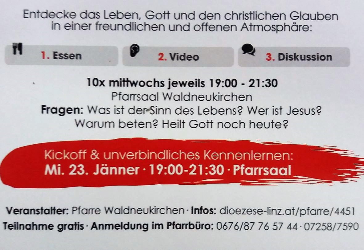 Kickoff und unverbindliches Kennenlernen am Mittwoch, 23. Jänner: 19 – 21.30 Pfarrsaal