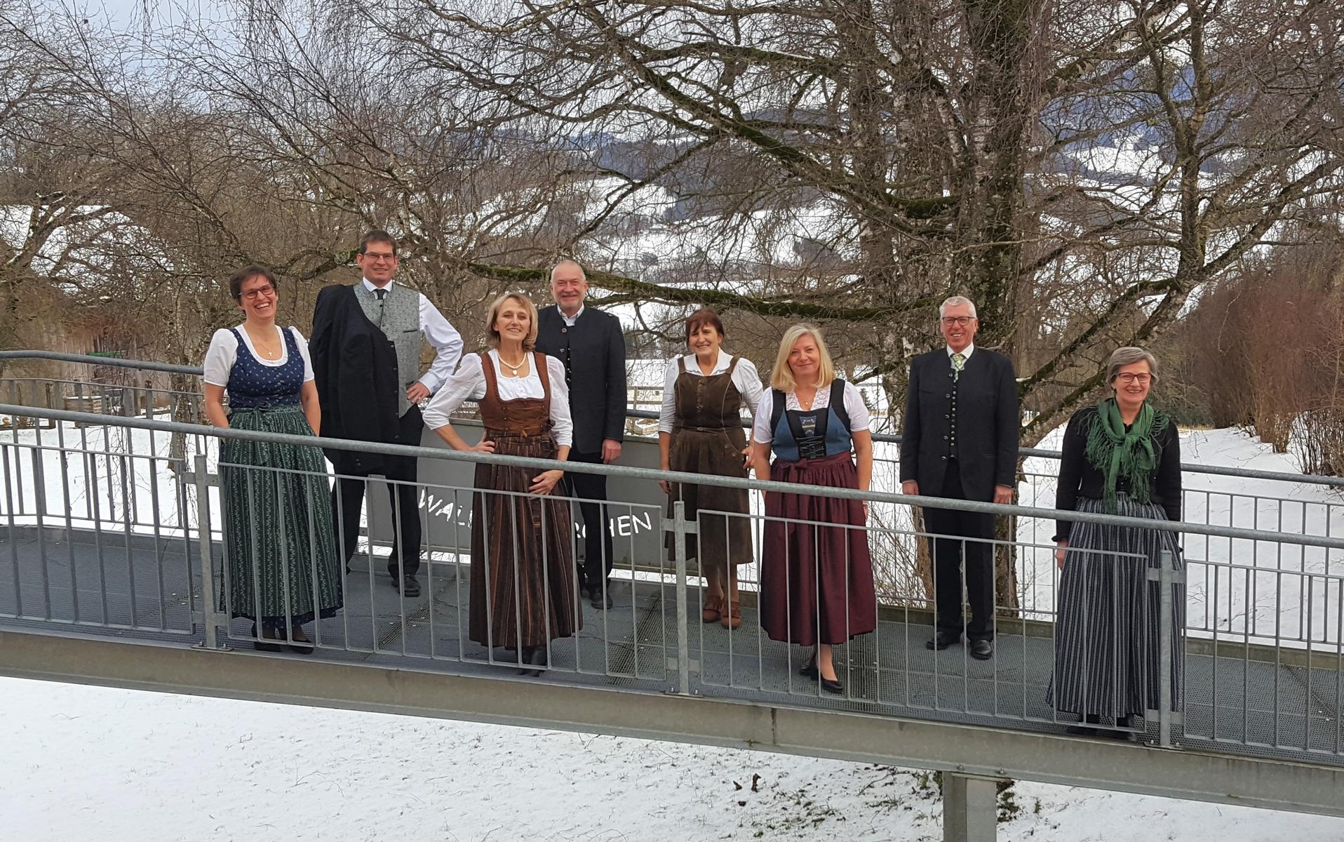 Bild mit Dame: Bürgermeister, Pfarrleitung und Ausführende freuen sich mit Marianne Damböck über die gelungene Umsetzung. Erhältlich ist die CD mit dem Waldneukirchner Lied im Pfarrbüro, auf der Gemeinde und der Raiba Waldneukirchen.