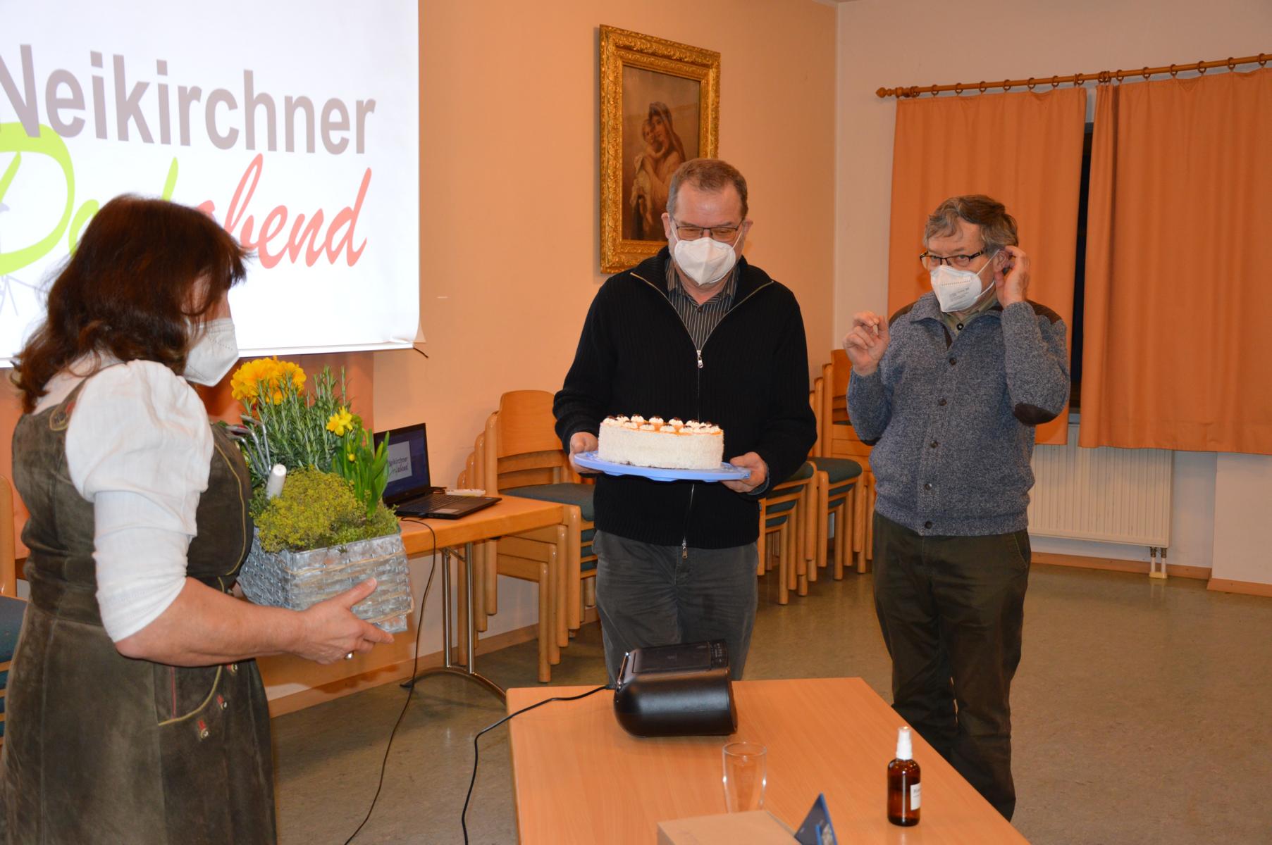 Überreichung eines Präsents für die Initiatorin durch Pfarrer Hofmann und Finanzchef Josef Riedl an Marianne Damböck.