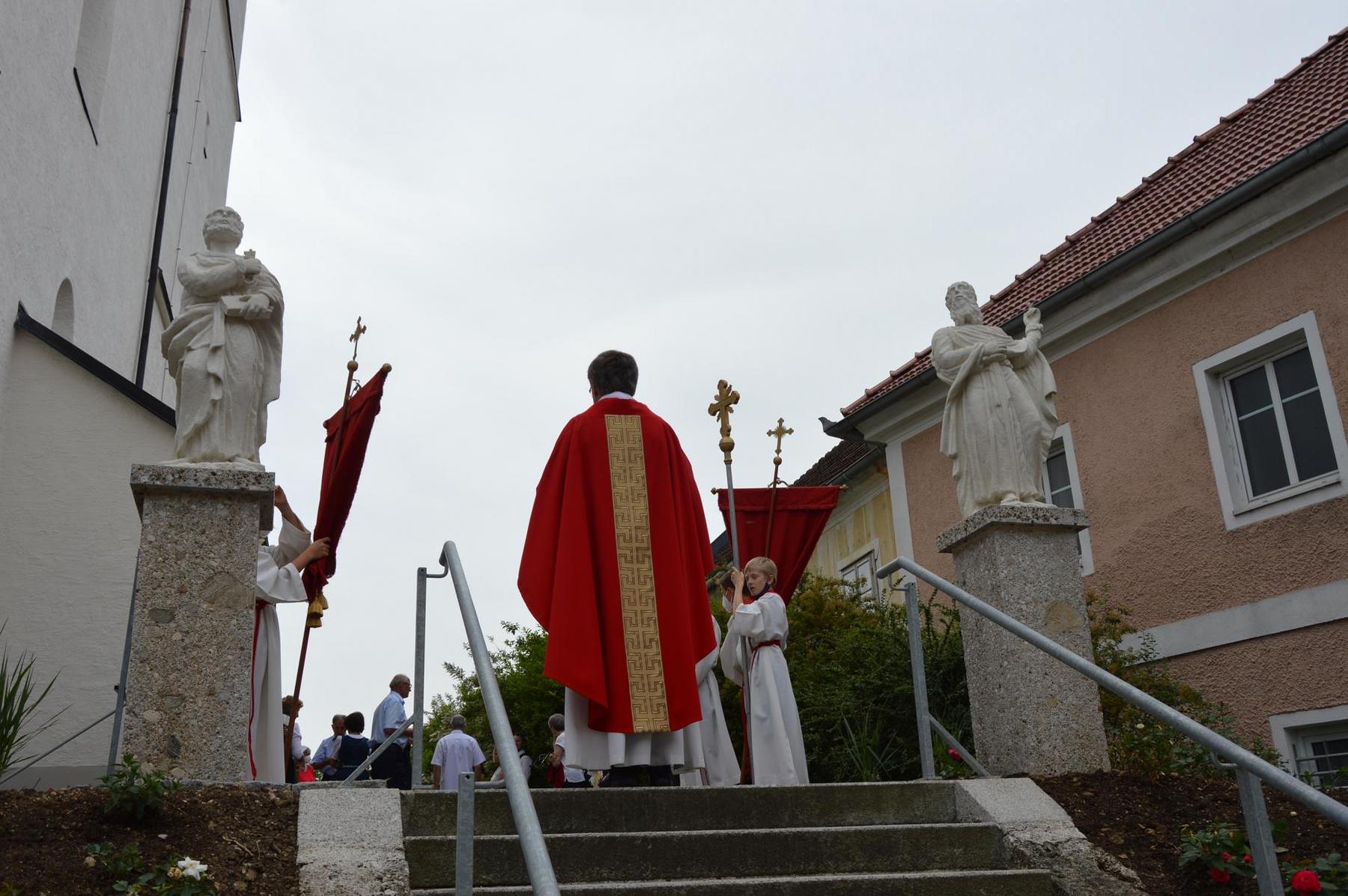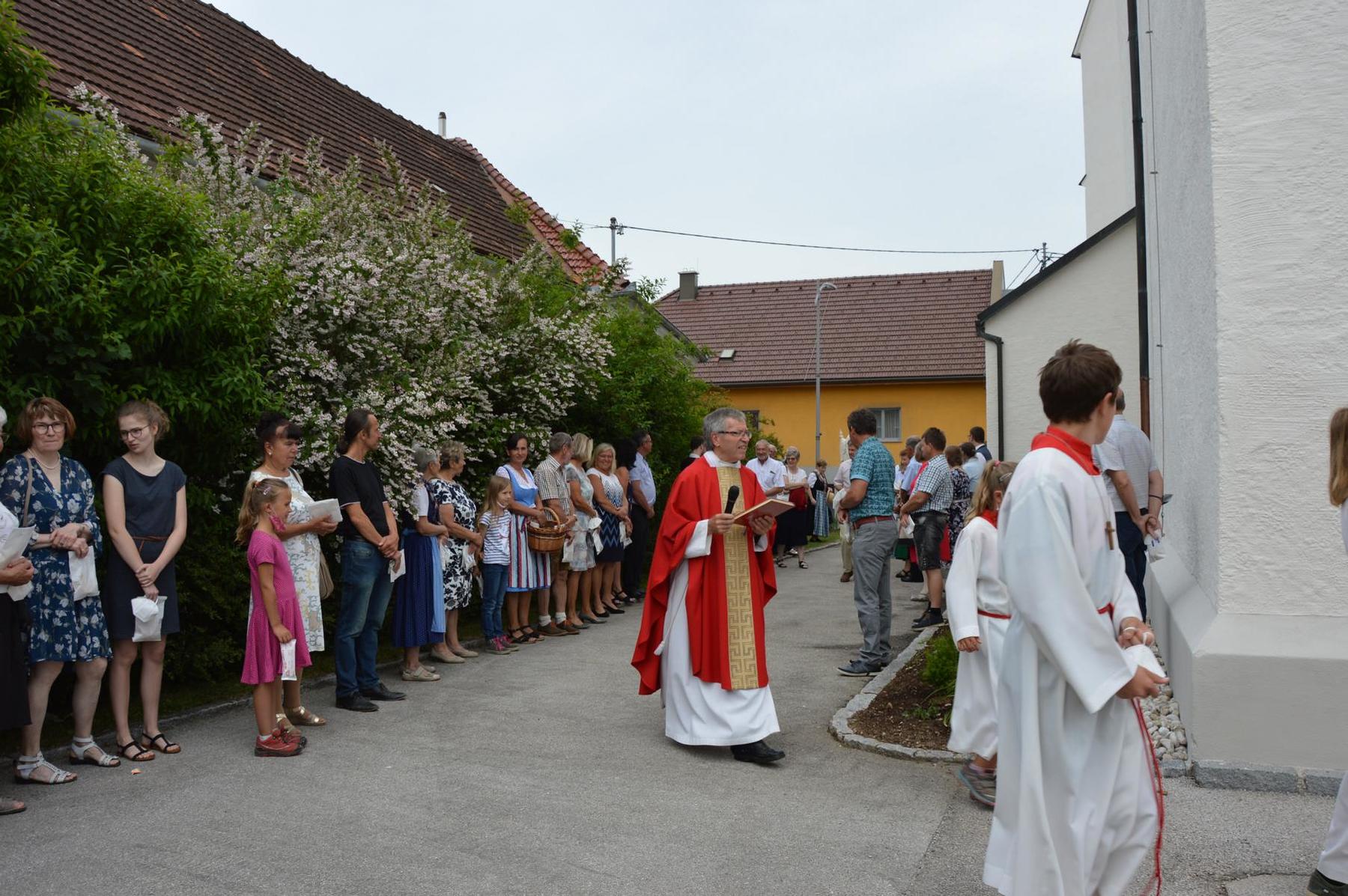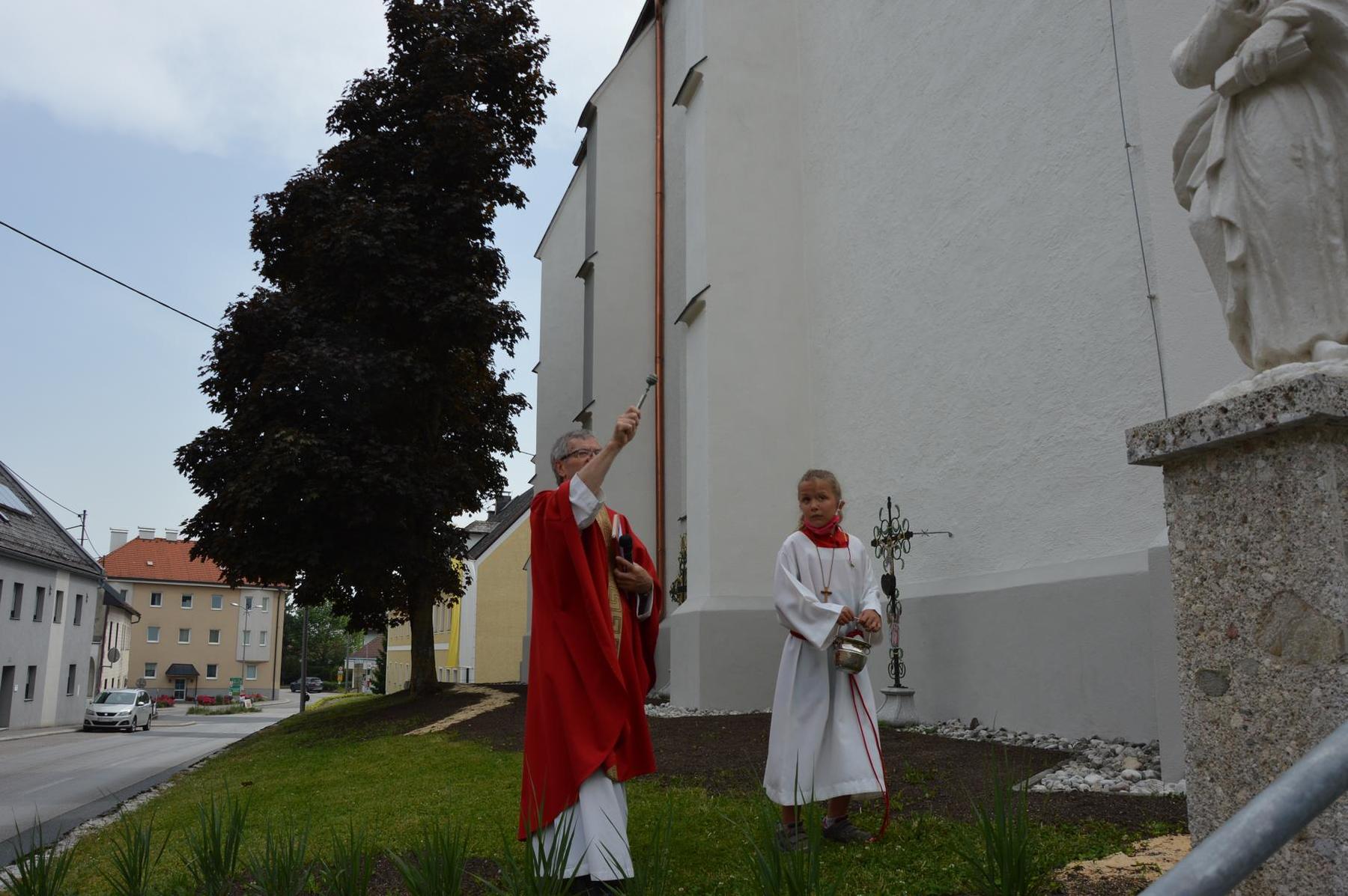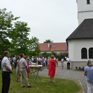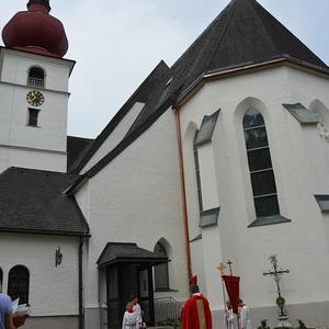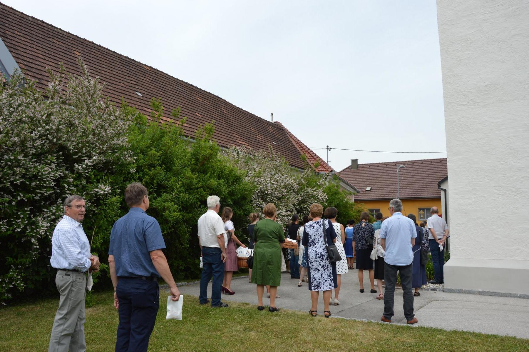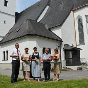 mit einer coronabedingten, kleinen Gemeinde. Umso herzlicher war die Freude über den Abschluss eines langen Projektes, bei dem die ersten Ansätze schon 2014 stattfanden. Finanzausschussvorsitzender Josef Riedl kümmerte sich mit großer Umsicht und enormen Engagement um die Organisation, auch um die freiwilligen Helfer. Die Sanierung kostete über 200.000 Euro, wovon ungefähr die Hälfte von der Diözese aus den Kirchenbeitragsgeldern gedeckt wurde. Den Rest brachte die Pfarre durch viele, unterschiedliche Aktivitäten und durch viele Spenden auf. Großer Dank gebührt auch der Gemeinde und dem Denkmalamt. Hervorzuheben ist aber die Leistung der Freiwilligen, die durch ihre Arbeit wertvolle Dienst leisteten. So steht die Pfarre jetzt schuldenfrei da. Das nächste große Bauprojekt ist die Innenrenovierung, denn die letzte fand 1984-1985 statt. Doch noch wichtiger erscheint die "Kirche der Menschen" zu bauen.