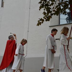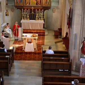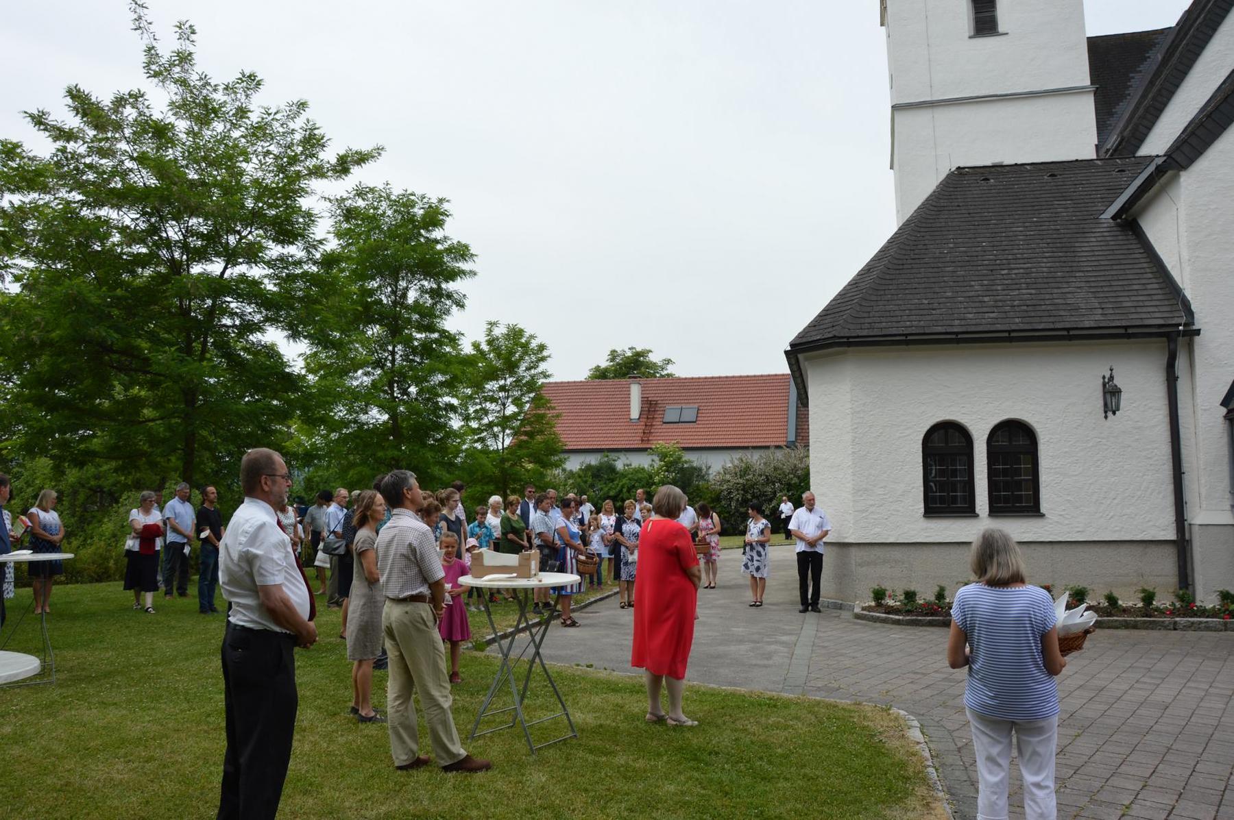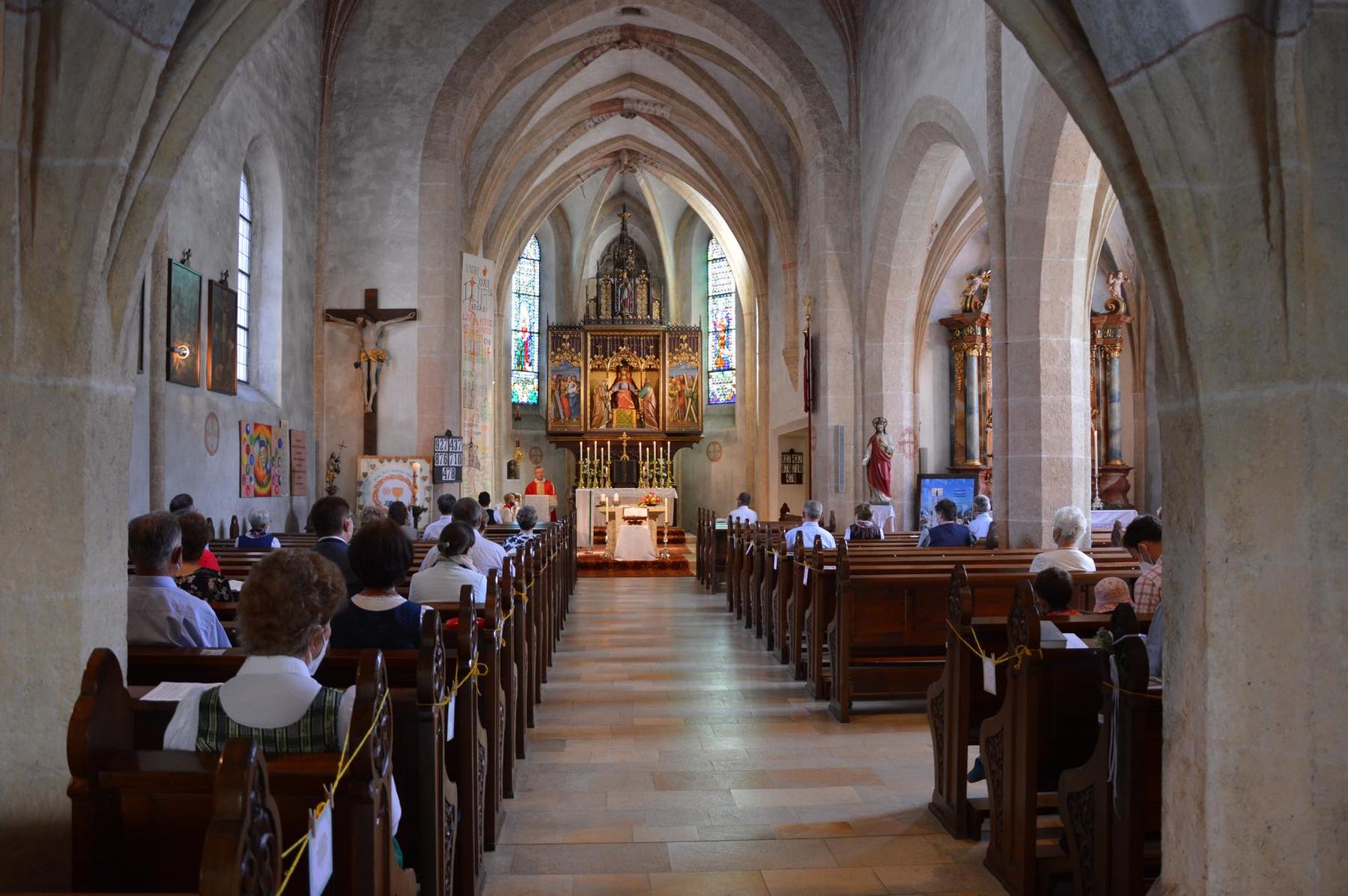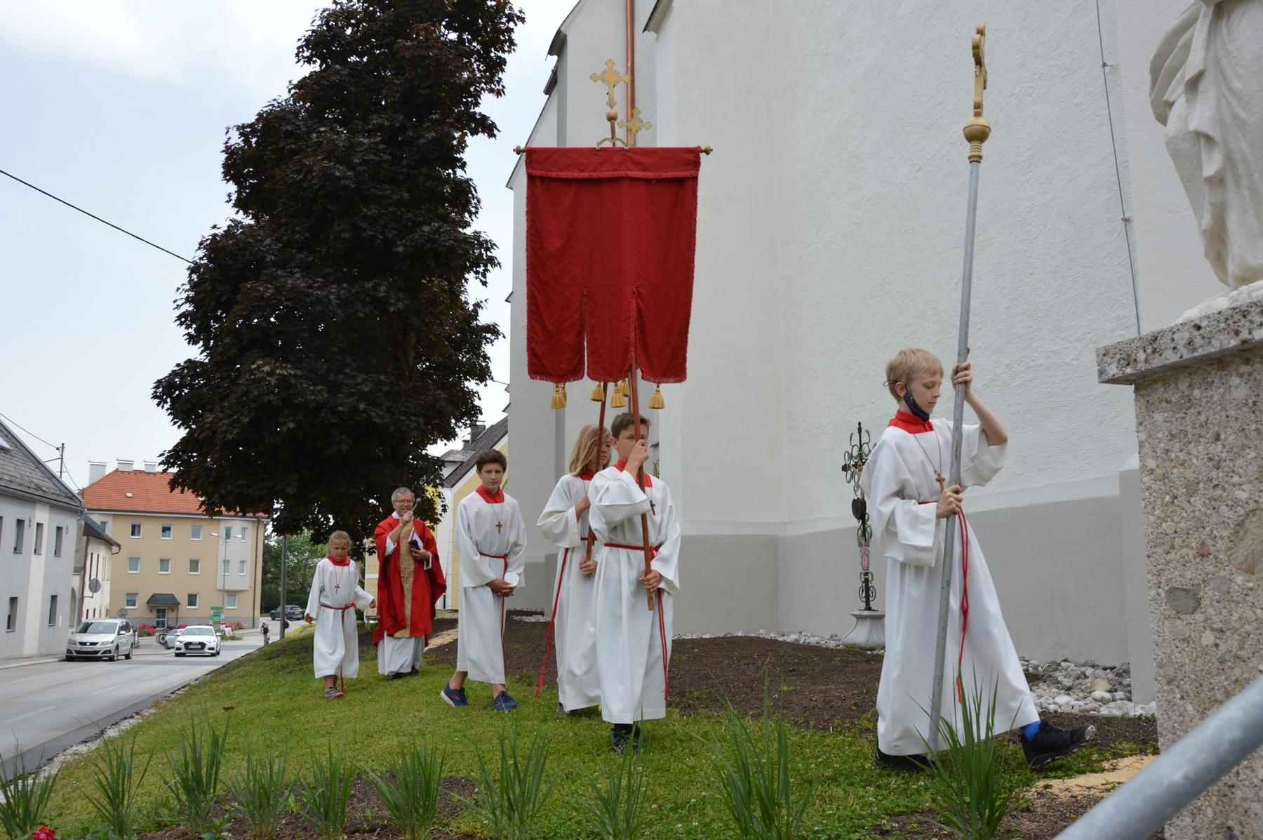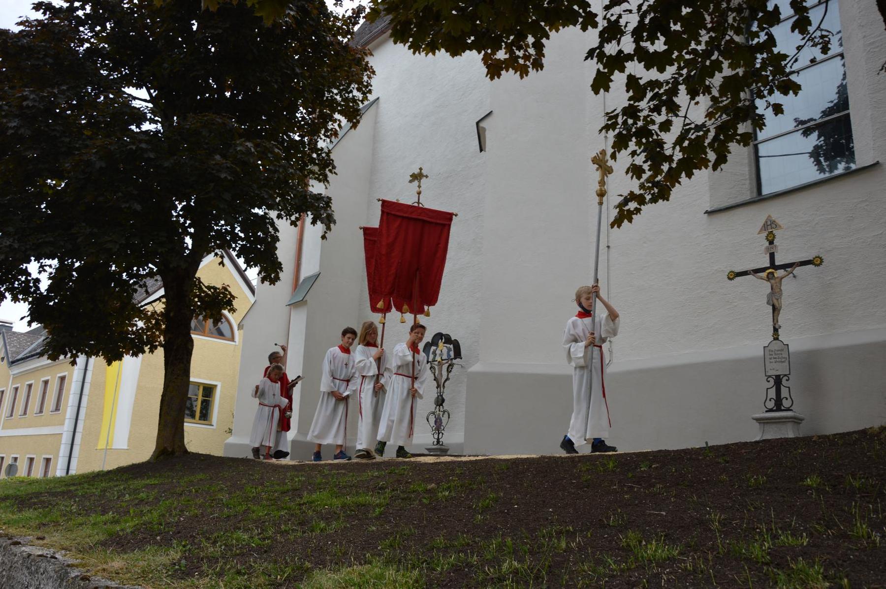 mit einer coronabedingten, kleinen Gemeinde. Umso herzlicher war die Freude über den Abschluss eines langen Projektes, bei dem die ersten Ansätze schon 2014 stattfanden. Finanzausschussvorsitzender Josef Riedl kümmerte sich mit großer Umsicht und enormen Engagement um die Organisation, auch um die freiwilligen Helfer. Die Sanierung kostete über 200.000 Euro, wovon ungefähr die Hälfte von der Diözese aus den Kirchenbeitragsgeldern gedeckt wurde. Den Rest brachte die Pfarre durch viele, unterschiedliche Aktivitäten und durch viele Spenden auf. Großer Dank gebührt auch der Gemeinde und dem Denkmalamt. Hervorzuheben ist aber die Leistung der Freiwilligen, die durch ihre Arbeit wertvolle Dienst leisteten. So steht die Pfarre jetzt schuldenfrei da. Das nächste große Bauprojekt ist die Innenrenovierung, denn die letzte fand 1984-1985 statt. Doch noch wichtiger erscheint die "Kirche der Menschen" zu bauen.