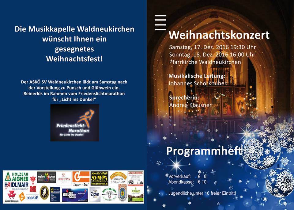 Das festliche Weihnachtskonzert des Musikvereins wird 2x aufgeführt: am Samstag, den 17. Dezember um 19.30 Uhr und am Sonntag, den 18. Dezember um 16 Uhr