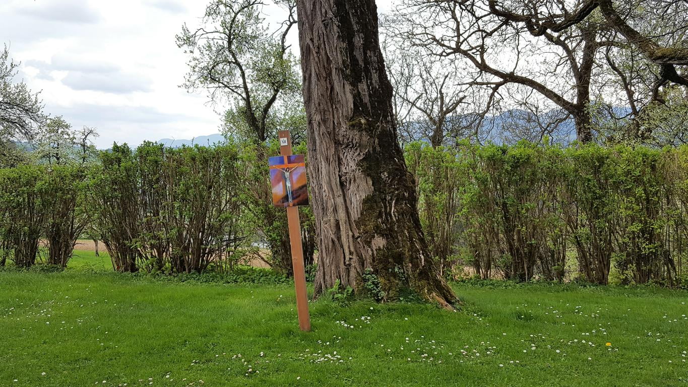Der Kinderkreuzweg am Kirchenvorplatz und im Pfarrhofgarten