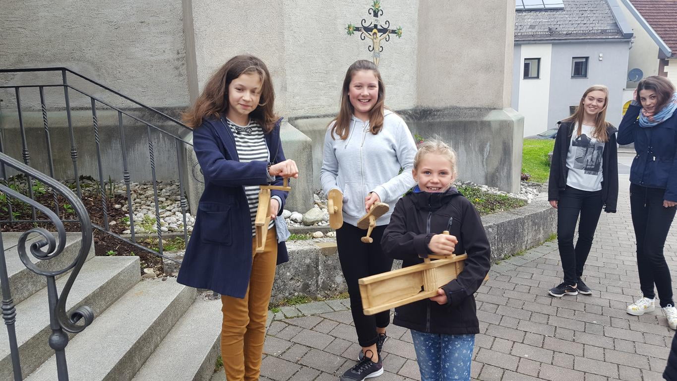 Die Glocken verstummen am Gründonnerstag, deshalb rufen die Ministranten mit Holzratschen die Menschen zum Gottesdienst.