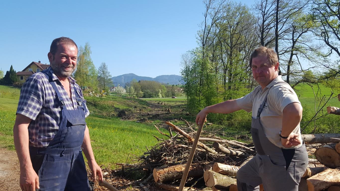 Josef Riedl und Franz Achathaler überwachen die Aufpflanzung