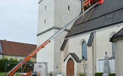In den letzten Wochen wurden notwendige Sanierungsmaßnahmen am Kirchengewölbe durchgeführt. Wegen der Schäden am Gewölbe erfolgte im Dachboden des Altarraumes das Einziehen eines Stahlträgers und Verstärkungen der Mauerbänke und der Verstrebungen des Dachstuhls.