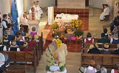 Am strahlenden Frühherbst-Sonntag, den 9. September feierte die Pfarrbevölkerung das Erntedankfest. Nach der Segnung der Erntekrone, die die Katholische Jugend machte, führte der Festzug in die Pfarrkirche.