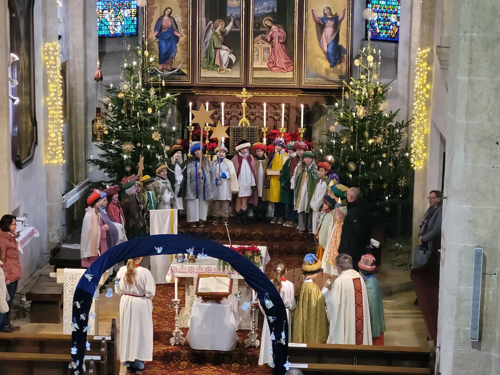 Das Dreikönigshochamt gestalteten die 40 Kinder, die als Sternsinger zwei Tage lang von Haus zu Haus zogen und der Kirchenchor mit Orchester mit der Pastoralmesse von Ignaz Reimann. Am Schluss der Messe brachte Harald Richter, der bereits liebevoll als "Dreikinig-Vater" wegen seiner Verdienste, bezeichnet wird, einen Bericht über die heurige Dreikönigsaktion.