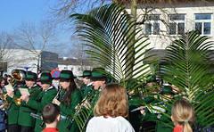 Der heurige Palmsonntag, 25. März ist ein strahlender Frühlingsmorgen.Bei der Marienkapelle erfolgte die Weihe der Palmbuschen unter schöner musikalischer Begleitung von Kindergarten, Musikkapelle und Kirchenchor.