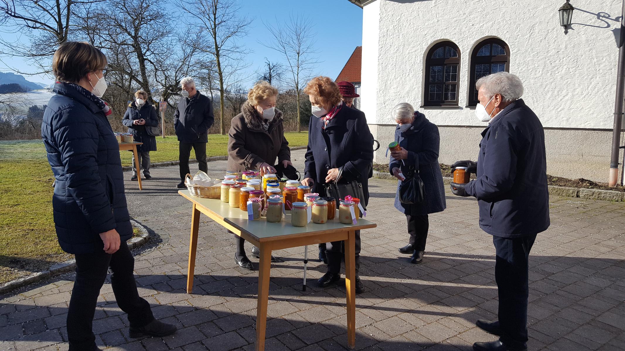 Anstelle des Suppenessens der KFB gab es heuer wegen der Beschränkungen der Corona-Krise Suppen im Glas. Die Kirchenbesucher kauften eifrig, denn es geht um die Unterstützung von Projekten in benachteiligten Ländern.