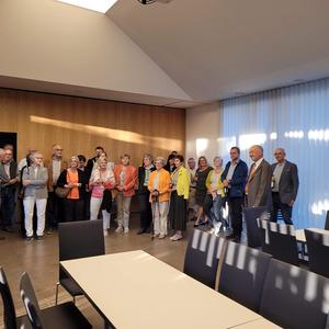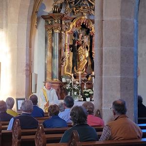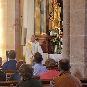 Der Kirchenchor gestaltete mit feierlichen Marienliedern die Andacht, zu der viele WaldneukirchnerInnen gekommen waren. Im Gemeindezentrum Forum fand die Feier statt, da der Pfarrsaal bereits für das Frühstück der Erstkommunion (am Sonntag, 15. Mai) gedeckt war. Anerkennende Worte fanden Pfarrer und Chorleiterin Christine Kerschbaummayr, die auch einige amüsante Interviewfragen an den Jubilar stellte.
