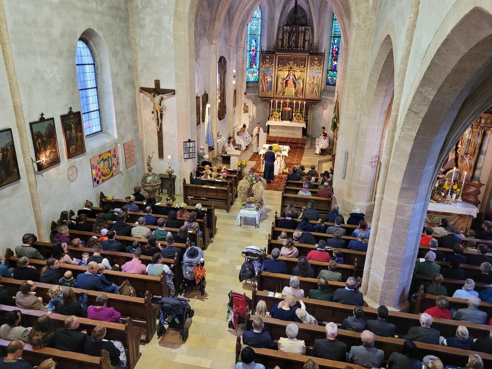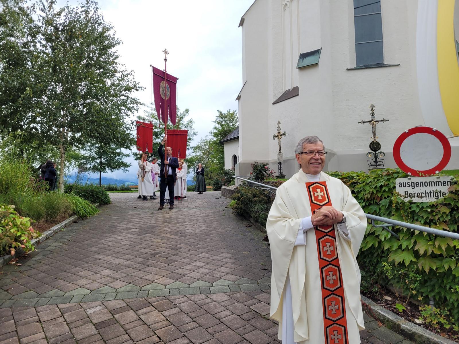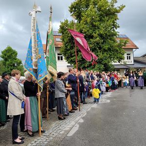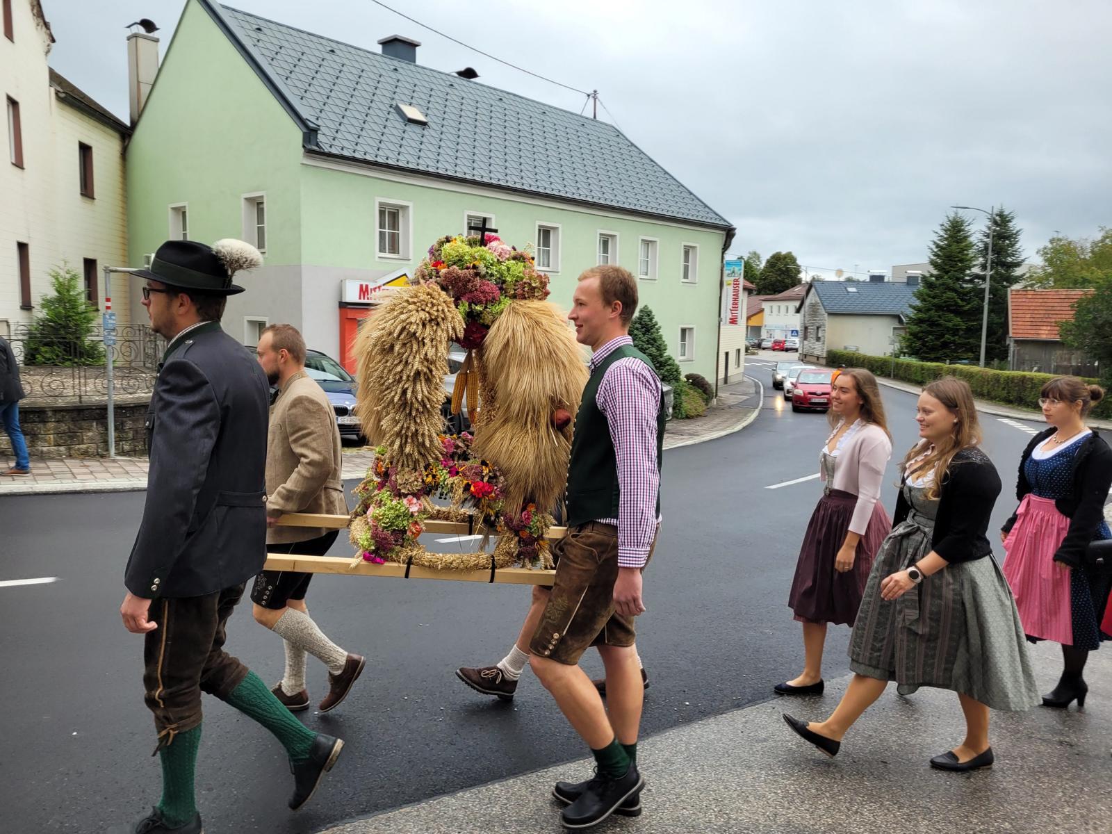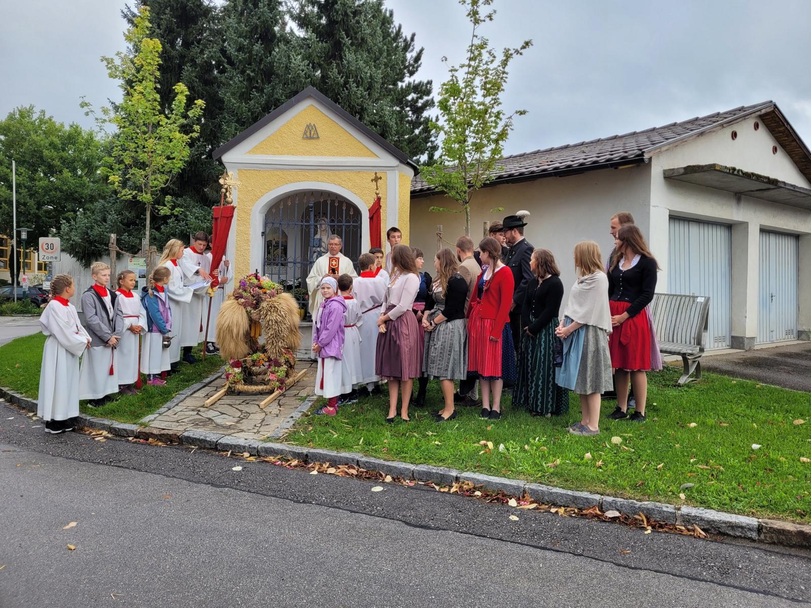 Anschließend ging die Prozession zur Pfarrkirche und es begann zu regnen. Pfarrer Hofmann führte in seiner Ansprache die vielfältigen Probleme der Welt im Zeichen des Klimawandels und der ausbleibenden Ernte an. Der Kirtag am Dorfplatz fand unter Schirmen statt. Die Pfarre präsentierte sich mit einem Stand mit Kuchen, Socken, Schürzen etc. für das Sozialprojekt "Marys Meals".